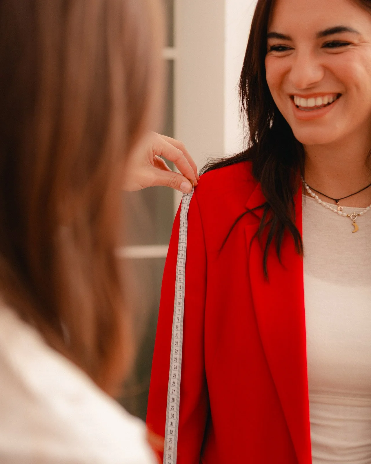 During the body shape consultation, we will analyse your proportions with a tape measure to understand where and if we need to intervene with optical illusion techniques to harmonise your figure.